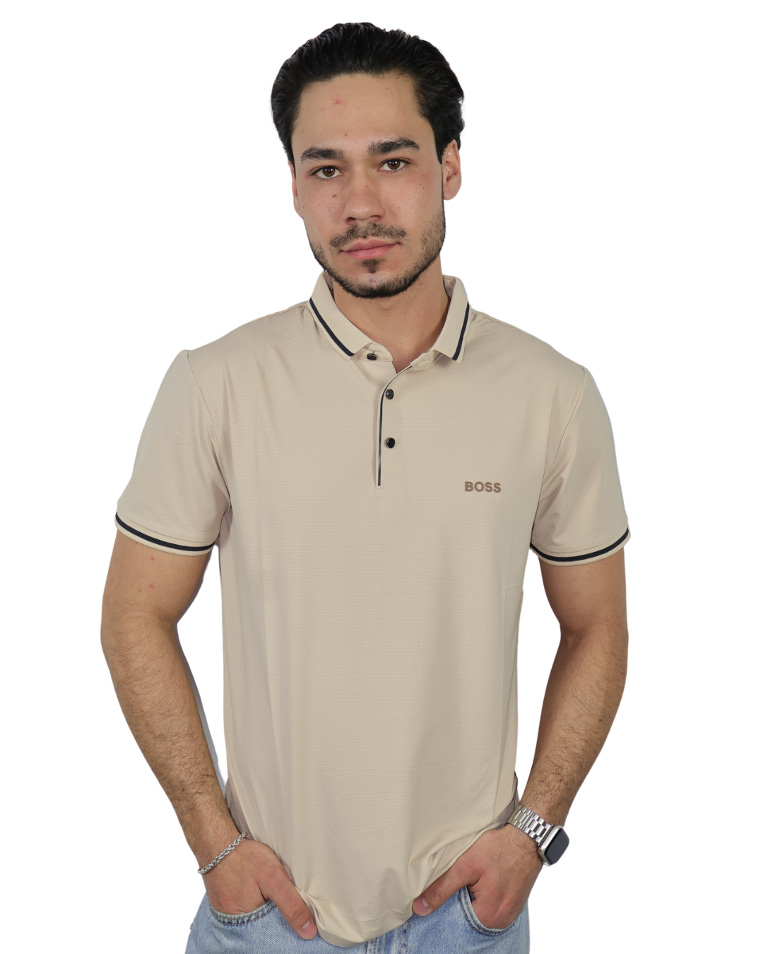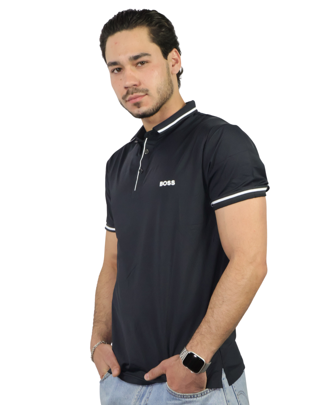 Polo importación de satín aplicación Boss